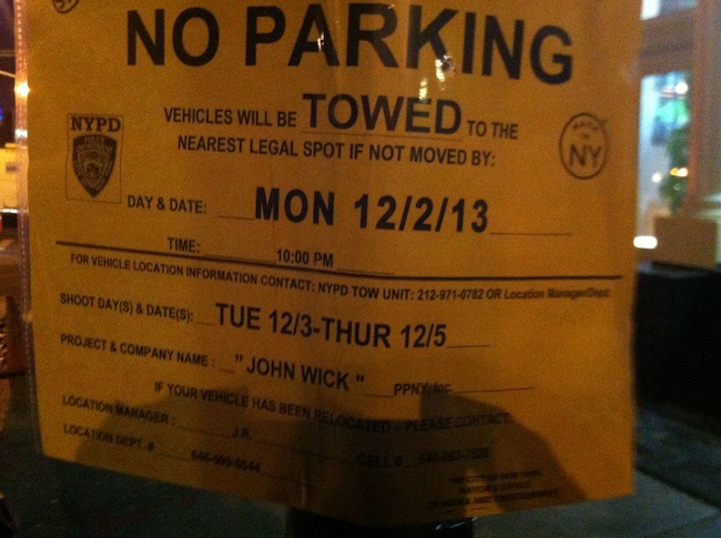 A reader has sent in a photo of a telephone sign that indicates that John Wick will continue to shoot through Thursday, December 5 in Tribeca. The sign was located on Church and Franklin.