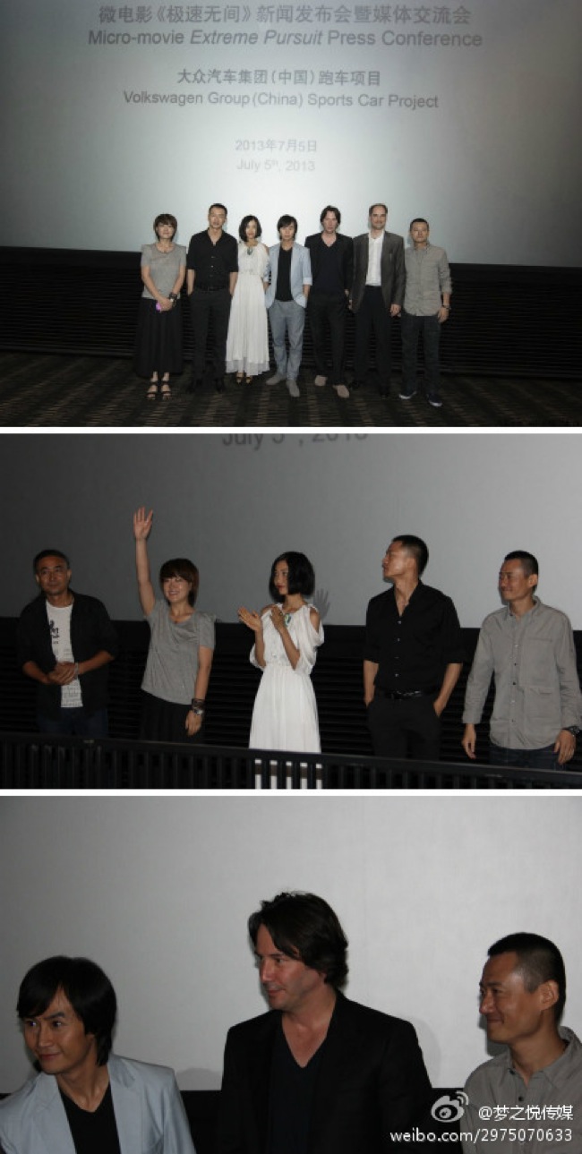 Yesterday the Volkswagon Group held a press conference to launch their micro film Extreme Pursuit to highlight their luxury cars. Keanu Reeves, who appears in the short, was in attendance at the conference. The Lamborghini also appeared in Man of Tai Chi for added product advertisement.
