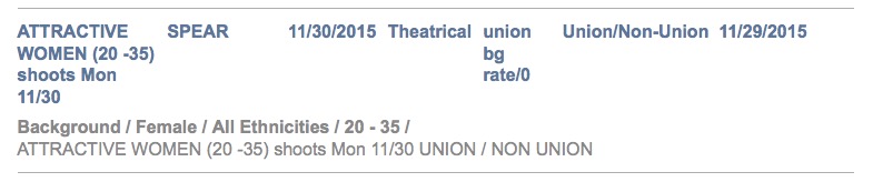 They are looking for attractive union/non-union women of all ethnicities, age 20-35, for a scene to film on Monday, November 30. Notice is currently here.