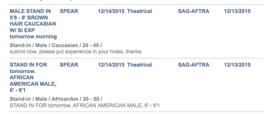 They are looking for a SAG-AFTRA African American male, 6’0-6’1and age 30-50 for scenes on Monday, December 14. Notice is currently here.