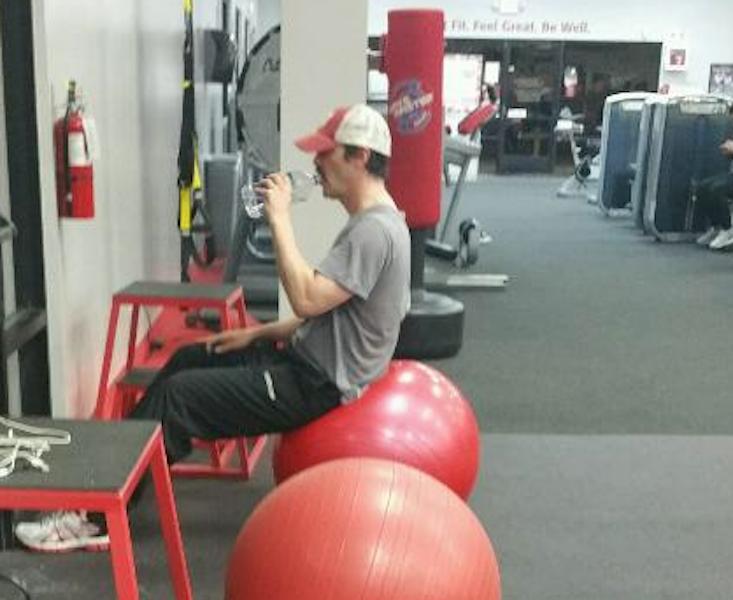 Many thanks to @sissycastillo for sharing a photo of Keanu at the gym and to @LavenderFlo for tweeting the link! You can see the original at the link. I have cropped and enlarged below.