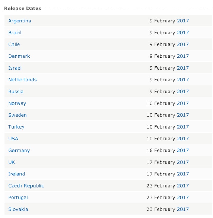 Current John Wick 2 Release Schedule Posted on October 4, 2016 9:32 am by IMDb has posted the release schedule for John Wick 2. I will post updated schedules as dates are added.