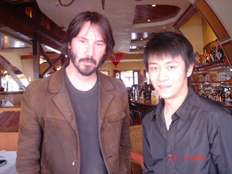Lin Shen has posted about his encounter with Keanu Reeves on his blog in a post dated November 24, 2006.Fromthe google translation, it sounds like the blogger was at a restaurant having a coke at when Keanu entered and accidentally bumped into his table knocking over his coke Being the gentleman that he is, Keanu apologized and helped him clean up the mess. It appears that there was some kind of story telling by Keanu with hand gestures and in the process he almost knocked over Lin Shen’s new glass of Coke. The blog and photo is here.