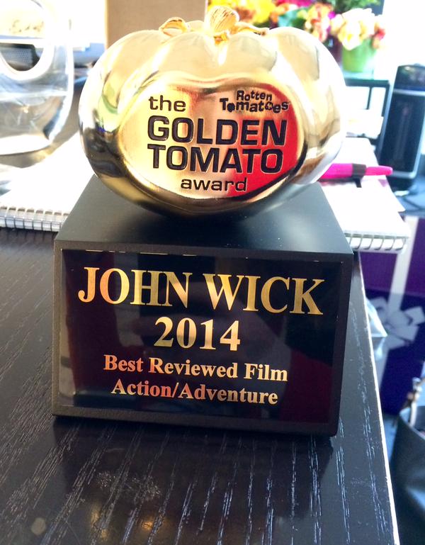 @87elevenAction tweeted a photo of their Golden Tomato Award. John Wick took the award for Best Reviewed Film in the Action/Adventure category. You can view it here.