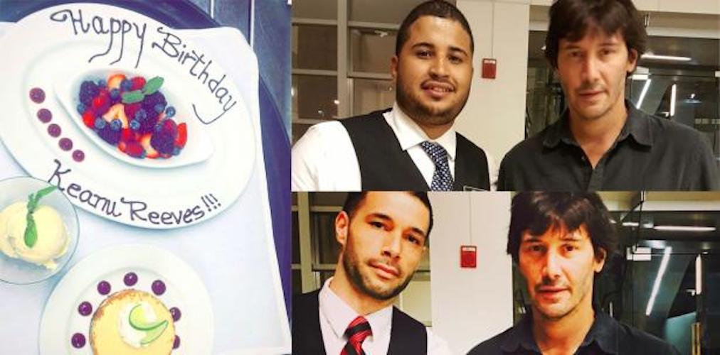 - At the end of dinner, his companions ordered Keanu lemon cake with blueberries that was engraved with his name.