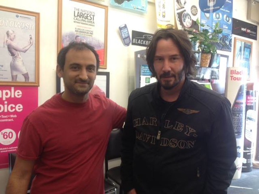 Keanu Reeves took a photos with a staff member when he was at DialNet on Melrose. According to the FB entry, he was trying to repair his cell phone. Looks like the phone was a casualty of the Uruguay trip.
