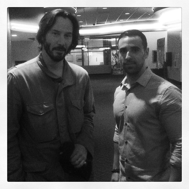 Earlier this evening @evanrodgers and  @JimmyShelton tweeted that Keanu Reeves was in the house for the showing of Gravity that they attended. 0_fausto_0 posted his photo that he took with Keanu this evening while he was at the movies. The photo looks like it was taken in the lobby of the theater.