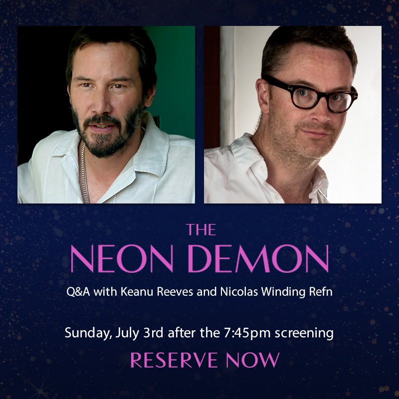 Keanu Reeves and Nicolas Winding Refn will attend a Q $ A on Sunday, July 3, 2016 at the ArcLight Hollywood after the 7:45 PM showing of The Neon Demon. Reserve your tickets now. Info is here.