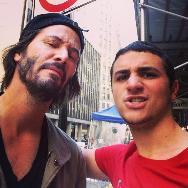 Keanu Reeves was out and about and stopped for a photo with a fan. From the tags on the photo, it appears to have been taken somewhere on Wall Street. The photo was posted approximately 2 hr ago and it is not clear if it is from today or earlier in the week.