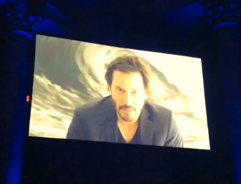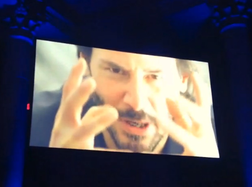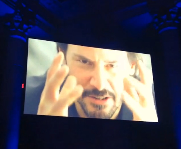 Update: Many thanks to thekitchen_nyc for sharing a photo from the event on webstagram. The photo is here and will be added after the screen captures from the Keanu’s taped message.