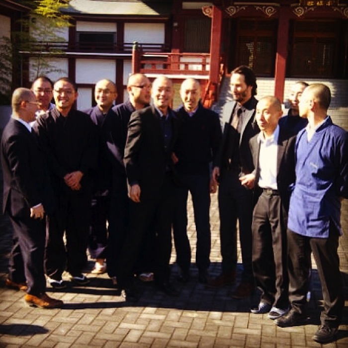 Keanu Reeves posed for a photo with Access Hollywood‘s Tim Vincent outside of the Zojo-ji Temple during the trip to Tokyo for the premiere of 47 Ronin. It looks like promotion interviews took place near the Temple.