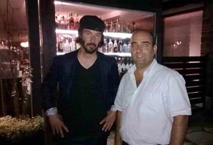Many thanks to BG MOCA who shared a photo of Keanu on their FB page!  Keanu had dinner at The Bohemian Gallery of Contemporay Art, Montevideo Restaurant. He posed with the owner (I assume) while he was there. You can view it here.