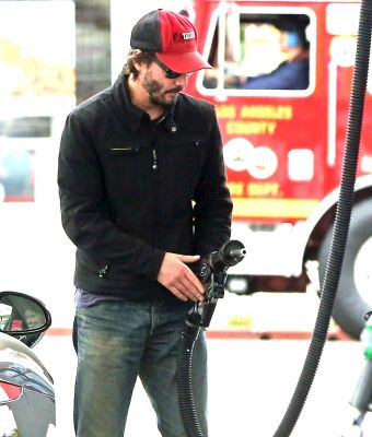 Keanu was spotted out in LA with his god daughter. After breakfast at Mel’s Diner, they stopped for gas and then at a typewriter repair store.