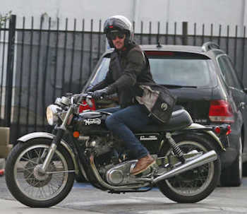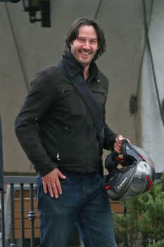 Keanu was spotted out to lunch with a friend in West Hollywood on January 13, 2017. He carried his helmut and was seen leaving on his Norton. Thumbnails are at East News.