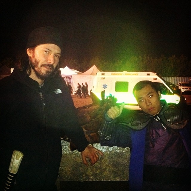 Dec2013withfanMany thanks to jems_cam who posted a photo that he took with Keanu on webstagram earlier today. From the tags and the way the poster is dressed, it looks like this photo was taken during the 47 Ronin shoot.