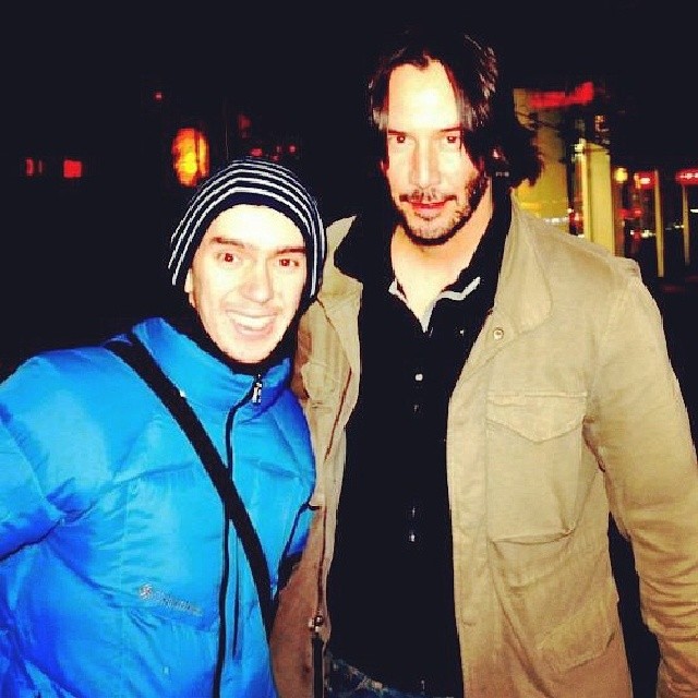 The fan shared the photo that he took with Keanu Reeves in NYC. The ph photo was posted today and I am assuming that it was taken while Keanu was in NYC for the Wick shoot. Considering how bundled up the fan is, I am assuming that the Photo was taken on one of the cold days in December. The photo seem familiar.