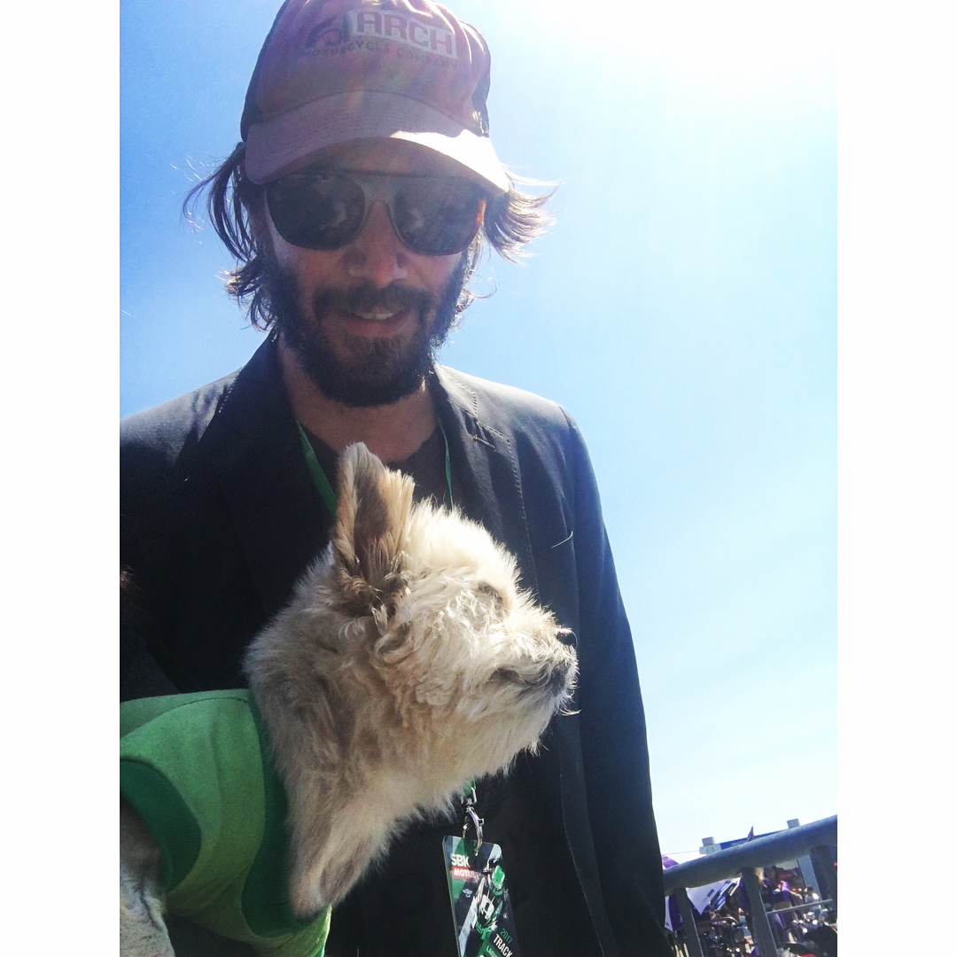 Pickle is a a Malti-Pom mix who travels around with her human Mom. She was at the US World Superbike Championship and met Keanu.