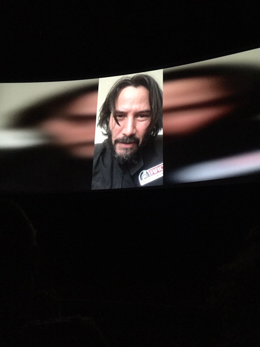 Many thanks to @SBrown400 for sharing a photo on twitter of Keanu on the big screen introducing Point Break at the Prince Charles Theatre on Saturday.