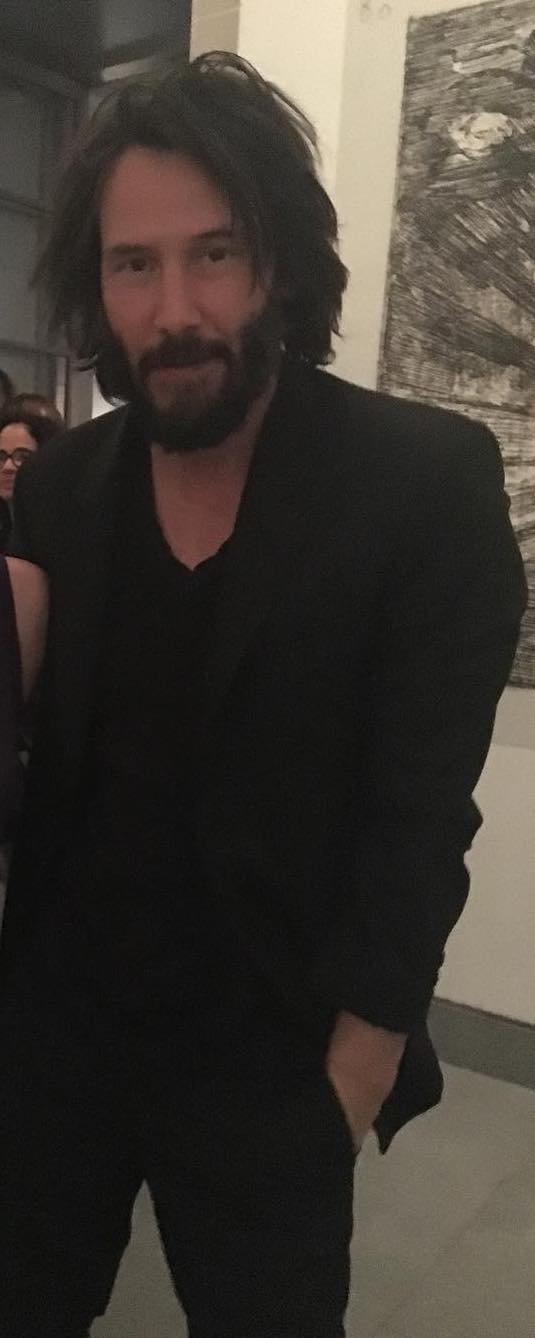 Update: Many thanks to Pedro Carvajal for sharing a photo on FB. On the far left you can see Keanu talking to Robert Longo.