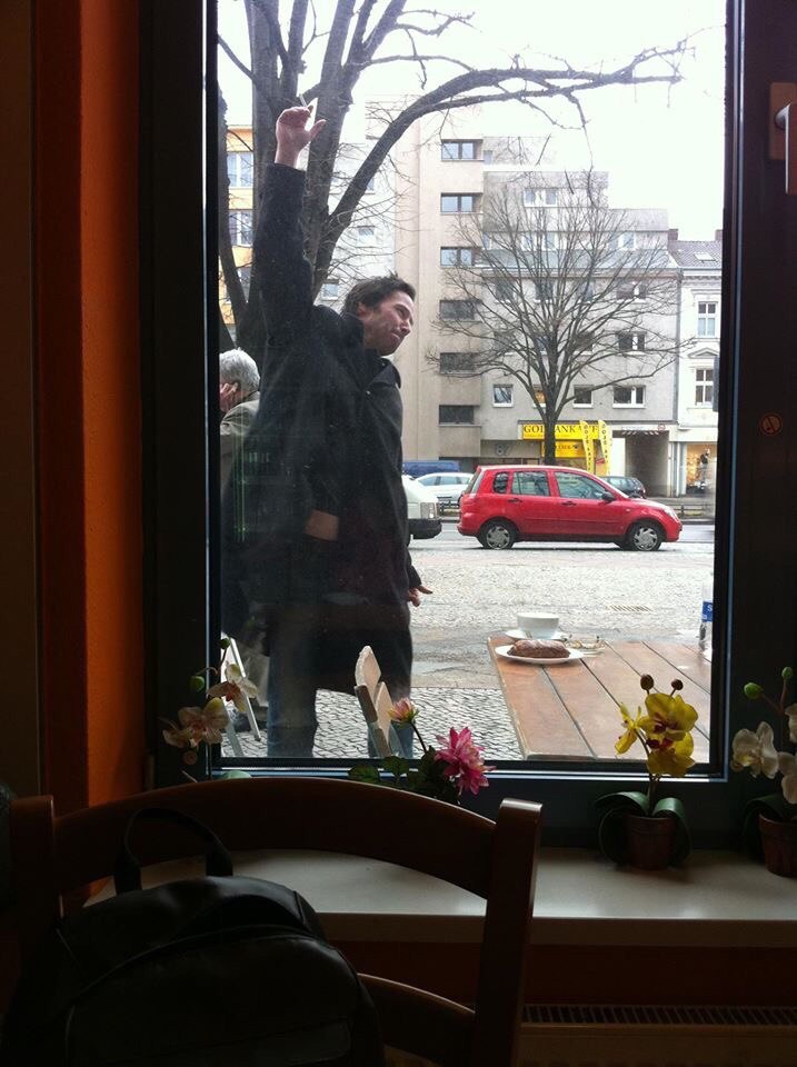 Many thanks to So Min Park for sharing a photo of Keanu on FB and to @keanulatino for tweeting the link. The photo was taken during Keanu’s visit to Berlin in February 2012 to present Side by Side at the Berlinale. Otto-Suhr-Allee is one of the main connecting streets in Berlin’s Charlottenburg district of Charlottenburg-Wilmersdorf district (via Wikipedia).