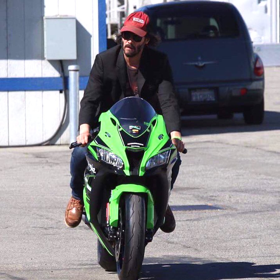Many thanks to @UKTeamGreen for sharing a photo of Keanu on one of their Kawasaki’s on twitter. The photo was most likely taken on Monday July 11 since Keanu is not wearing a badge.