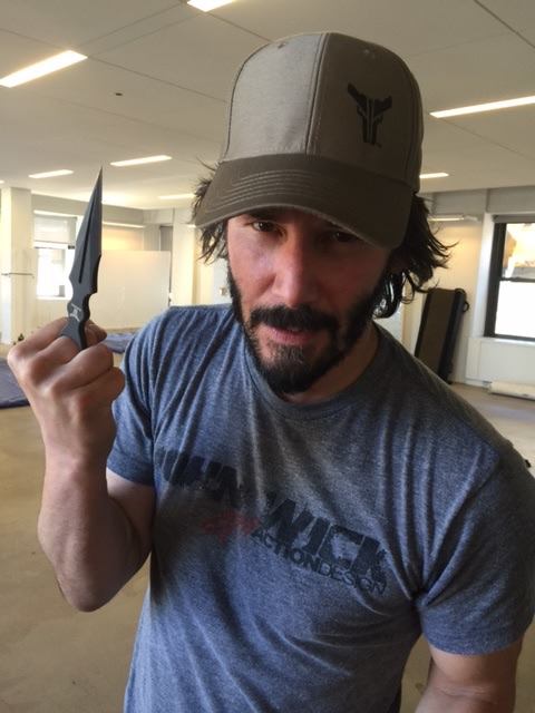 Many thanks to Skallywag Tactical for sharing a photo of Keanu with one of their daggers on both instagram and FB. From the comments on FB, the footage with the dagger in John Wick 2 ended up on the cutting room floor. The daggers can be seen on their website.