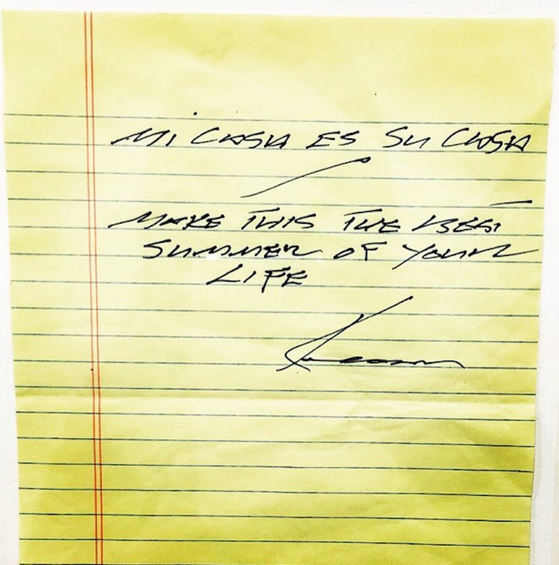 “Mi casa es su casa. Make this the best summer of your life. – Keanu”