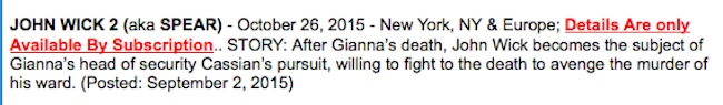In their October listings, My Entertainment World included a small tidbit about the John Wick 2 story.